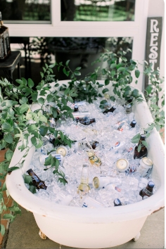 Having a festival or outdoor wedding? Why not fill a vintage bath tub with ice and chill your bottles in there. Guests can take what they want, when they want. And I imagine many will appreciate being offered a nice cold beer to start the day. If you want to go fancy you can make your own ice cubes with flowers in them. This idea looks stunning from start to finish - as ice and also floating in the water as it melts.